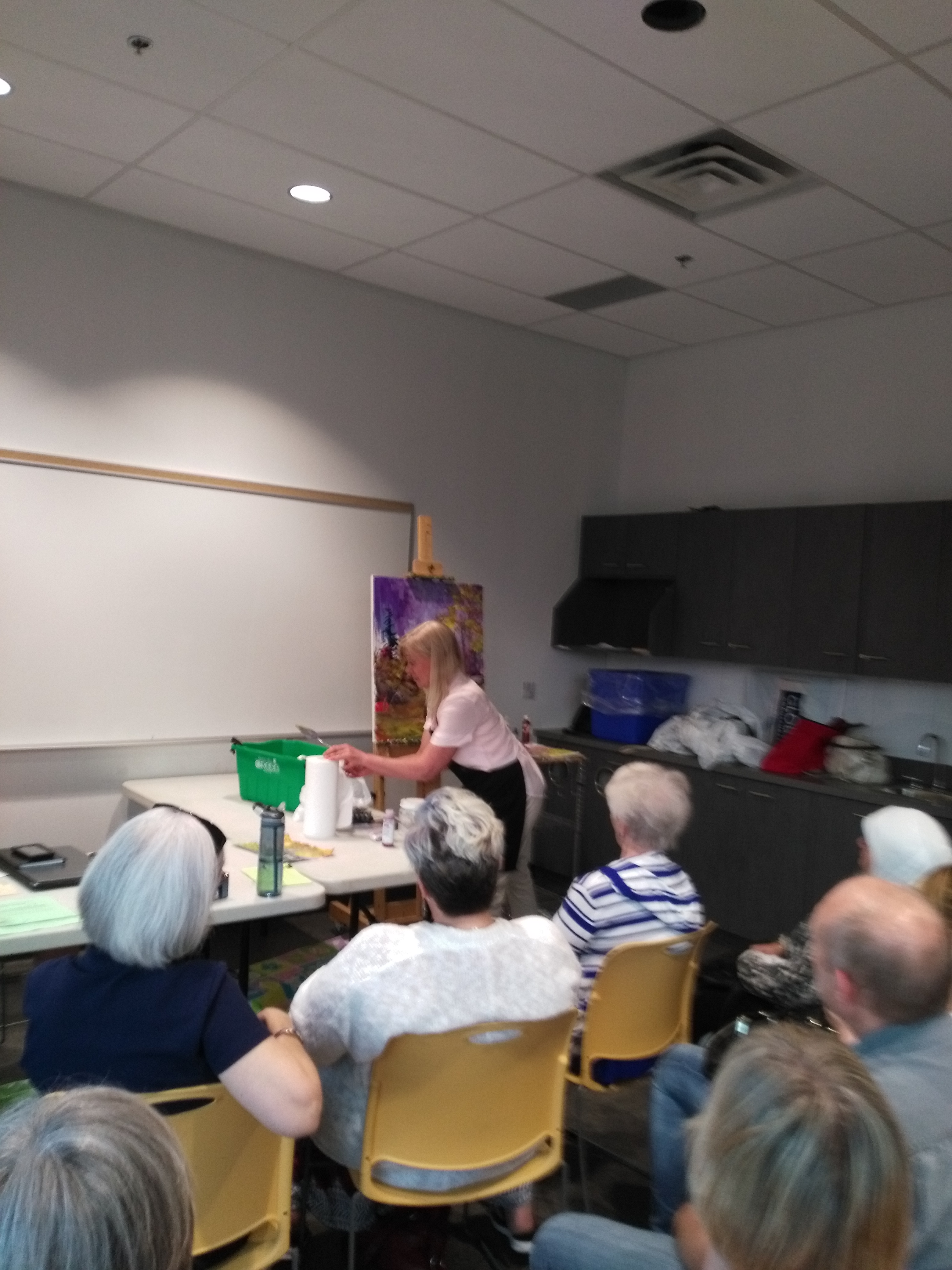 The Artists of Stonebridge enjoyed a demonstration of various techniques using a palette knife with Jacky MacDonald at their May 17th meeting. The group were impressed and inspired by her talent.